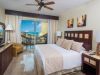 The bedroom features a deluxe king-size bed, an oversized en suite bathroom with a whirlpool tub, a separate shower, and his and hers sinks. Sliding glass doors open onto the private balcony, which you can access from the bedroom and the living room.