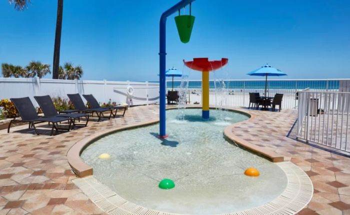 Enjoy Breakfast, Lunch, Dinner or Beverages at our full-service Restaurant and Lounge, featuring indoor or outdoor seating overlooking the pool deck and the Atlantic Ocean. Other resort features include an oceanfront oversized heated swimming pool, children’s splash park, hot tub and fire pits. For your vacation pleasure, the resort has scheduled recreational activities and entertainment.